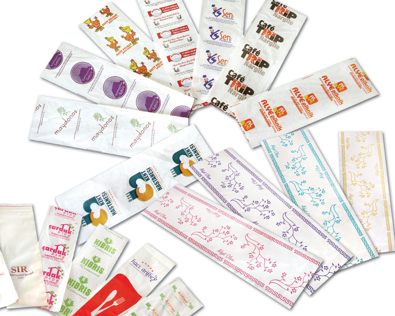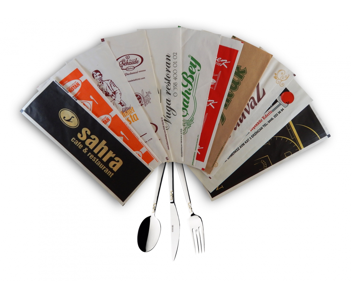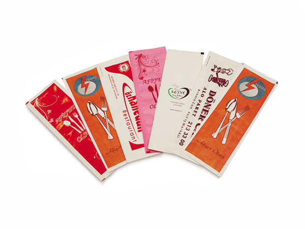 Lokanta, restoran, cafe vb. mekanlarda kullanılan mekan tanıtımı ve müşteriye temiz sunum yapmak amacıyla kullanılan şanlıurfa çatal bıçak kılıflarında genellikle tek renk baskı yapılmaktadır. İsteğine göre renk seçeneği iki adete artmaktadır. Firmanızın logosu, adı, adresinin bulunduğu reklam yapabildiğiniz şık bir sunum sağlamak amacıyla baskılı çatal bıçak kılıflarını kullanabilirsiniz.